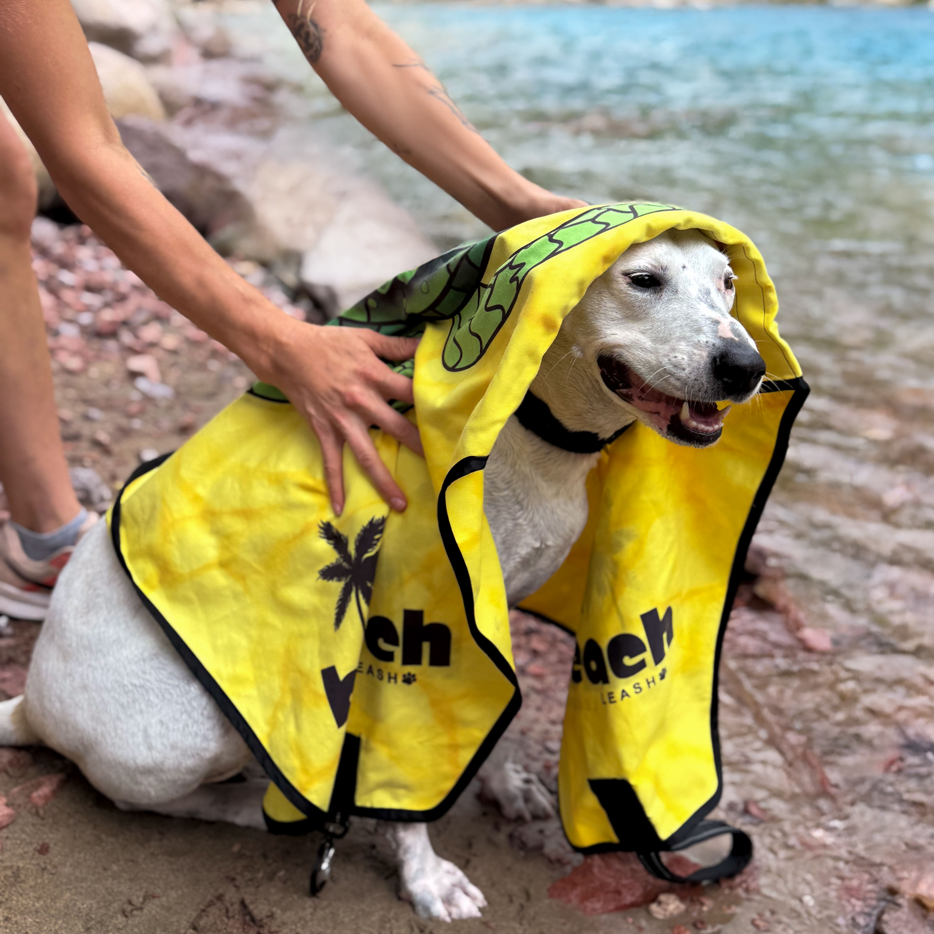 Beach Leash™ is more than just a leash — it’s a towel, a wrap, and your everyday adventure essential. Designed for beach days, yes — but also for muddy hikes, river dips, rainy days, park picnics and more.